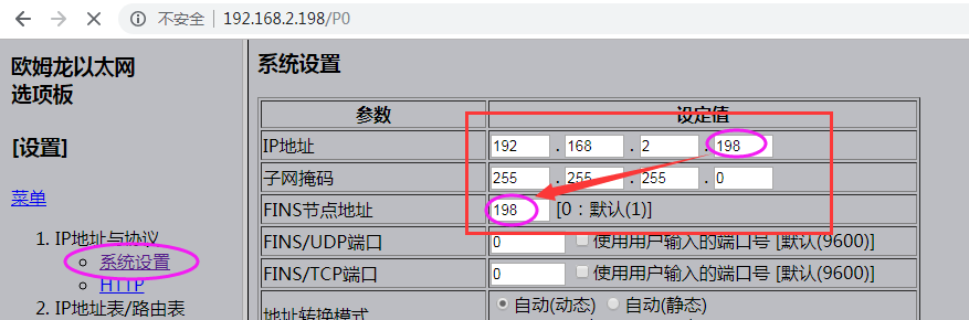 通過(guò)網(wǎng)線,連接PLC的CP1W-CIF41選件板網(wǎng)口與網(wǎng)關(guān)LAN口。