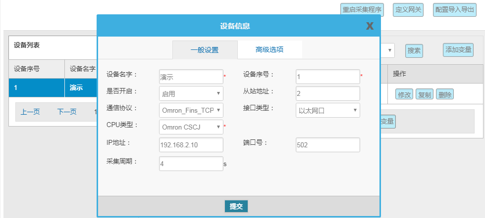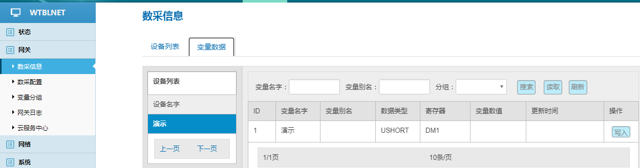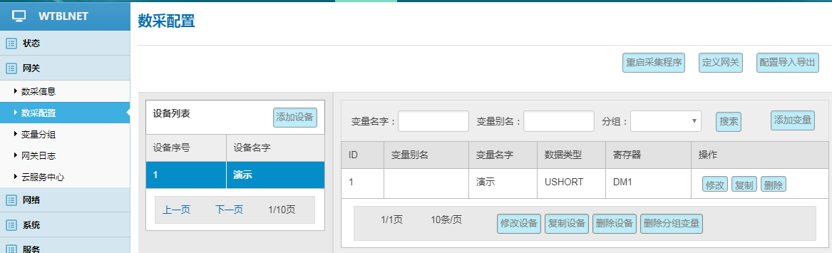 網(wǎng)關(guān)---數(shù)采配置---添加設(shè)備---添加變量---重啟采集程序并生效新的配置