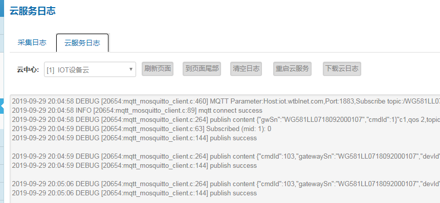 云接入日志用于診斷接入到云平臺(tái)的通信鏈路情況和數(shù)據(jù)報(bào)文情況。查閱路徑:網(wǎng)關(guān)---網(wǎng)關(guān)日志—云接入日志。