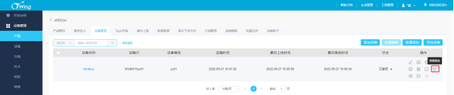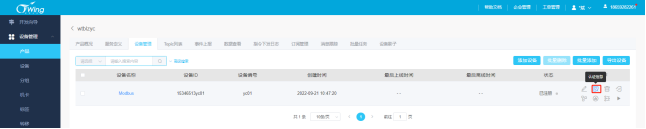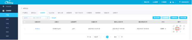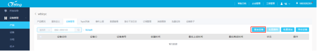 進(jìn)入產(chǎn)品詳情頁,點(diǎn)擊設(shè)備管理——創(chuàng)建設(shè)備