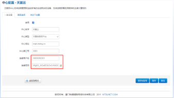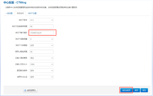 補(bǔ)全參數(shù),連接用戶名為天翼物聯(lián)網(wǎng)平臺(tái)的登陸賬號(hào),連接密碼和客戶端ID的獲取方法在本文檔中一、(四)處查看,填寫完點(diǎn)擊保存&應(yīng)用。