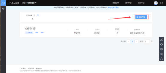 在全部產(chǎn)品中選擇MQTT物聯(lián)網(wǎng)套件(新版)