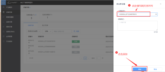 2、平臺上添加網(wǎng)關(guān)(設(shè)備)