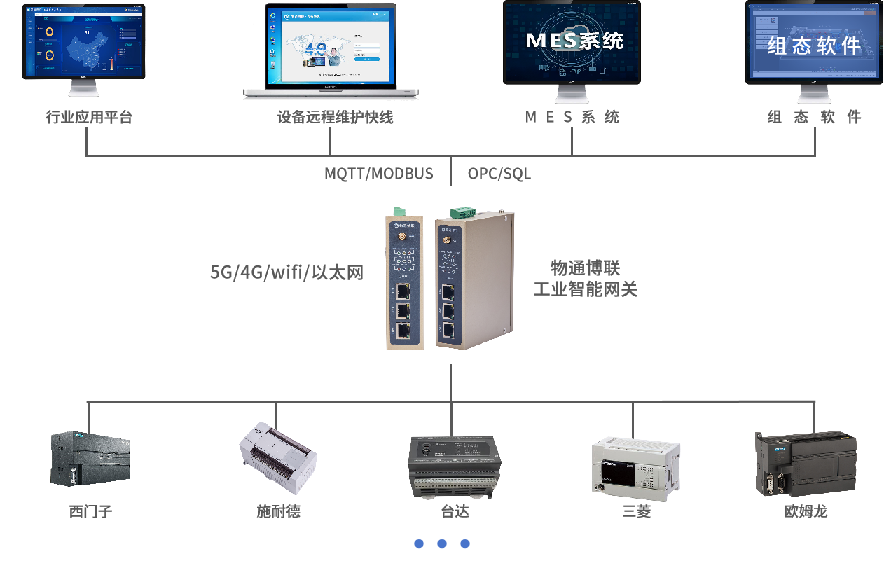 物通博聯(lián)PLC遠(yuǎn)程網(wǎng)關(guān)可以實(shí)現(xiàn)各種種類的PLC遠(yuǎn)程通訊、數(shù)據(jù)采集、遠(yuǎn)程監(jiān)控、遠(yuǎn)程調(diào)試、遠(yuǎn)程診斷、遠(yuǎn)程上下載程序,助力智能工廠、設(shè)備制造廠商、系統(tǒng)集成商快速實(shí)現(xiàn)PLC設(shè)備數(shù)據(jù)上云和遠(yuǎn)程維護(hù),實(shí)現(xiàn)數(shù)字化運(yùn)營(yíng)和遠(yuǎn)程化運(yùn)維。 支持西門(mén)子、三菱、歐姆龍、施耐德、臺(tái)達(dá)、匯川、倍福、基恩士、松下、AB、和利時(shí)、永宏、信捷……和 MODBUS、OPC系列等市面上所有主流的PLC設(shè)備數(shù)據(jù)采集。